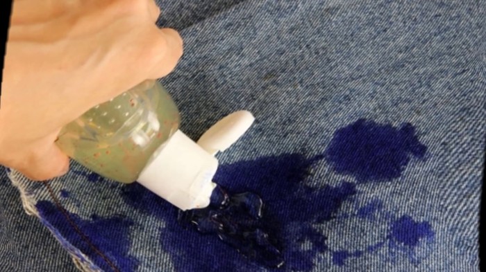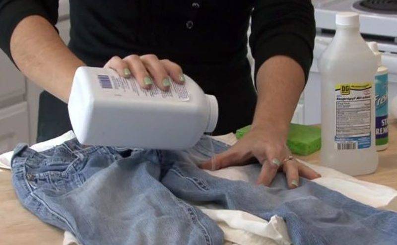 Si la tache est ancienne, il est préférable d'appliquer le peroxyde sur un coton-tige et de l'appliquer sur la zone à problème, d'attendre que le disque sèche et de laver le jean.