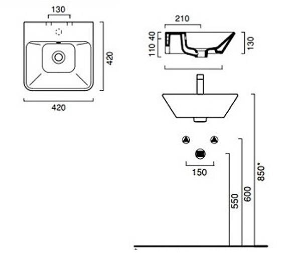 • Quel que soit le raccord de tuyau utilisé - caché ou ouvert, les sorties d'eau doivent être placées de manière à être pratiquement invisibles derrière le lavabo installé.