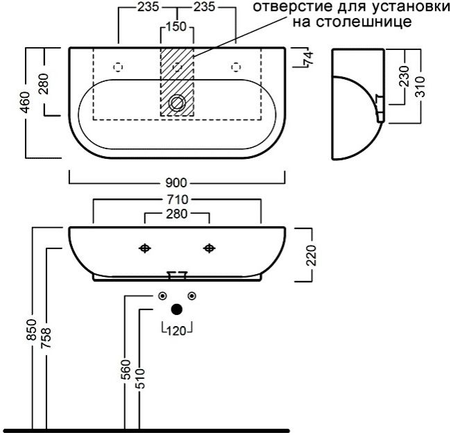 Déterminez correctement la taille du bol et la hauteur de son installation.Il est nécessaire de choisir un tel modèle pour qu'il n'occupe pas de mètres carrés supplémentaires de la pièce, mais qu'il ait en même temps des dimensions suffisantes pour couvrir le secteur de pulvérisation du jet d'eau. Il peut être standard dans les modèles de largeur 50-65 cm. La hauteur d'installation la plus « ergonomique » est de 0,8 m du sol. Et la distance devant le lavabo est de préférence laissée entre 0,8 et 0,9 m.