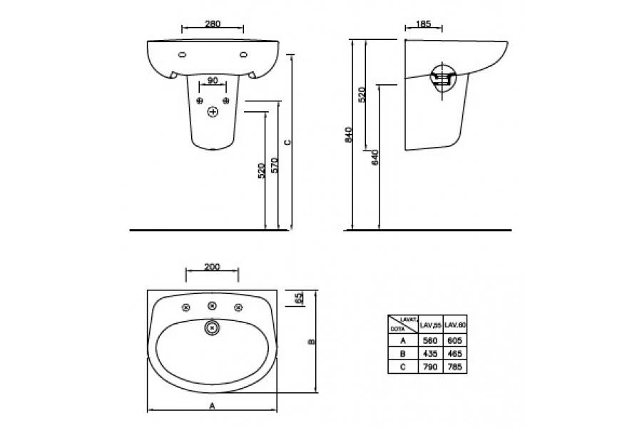 • Nous mesurons à 80 cm du sol, par conséquent, le lavabo sera situé à une distance d'environ 85 cm.Si l'appareil est utilisé par des personnes de petite taille, ces paramètres peuvent être révisés en faveur d'une réduction.