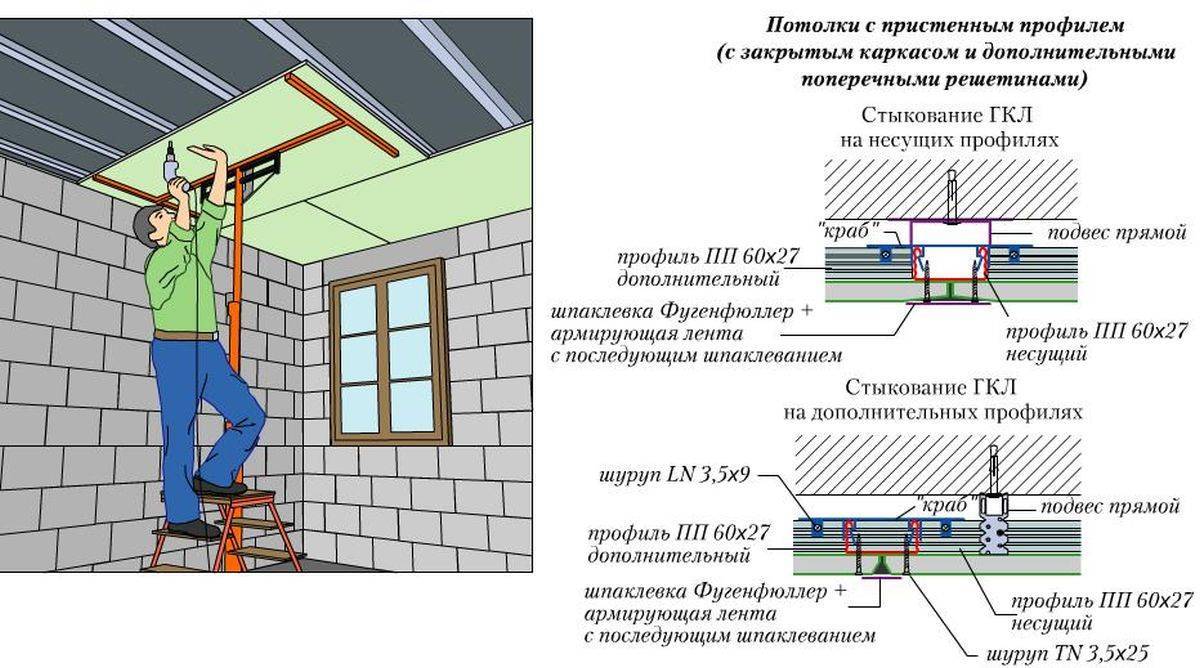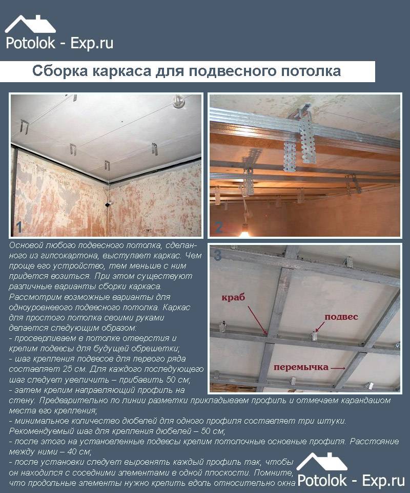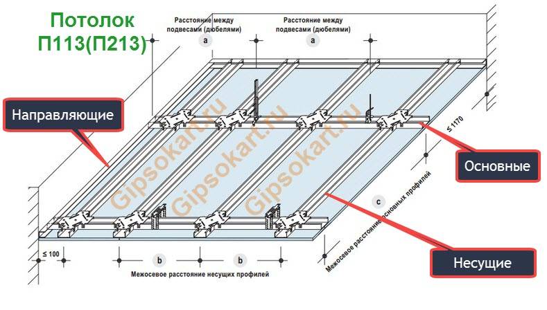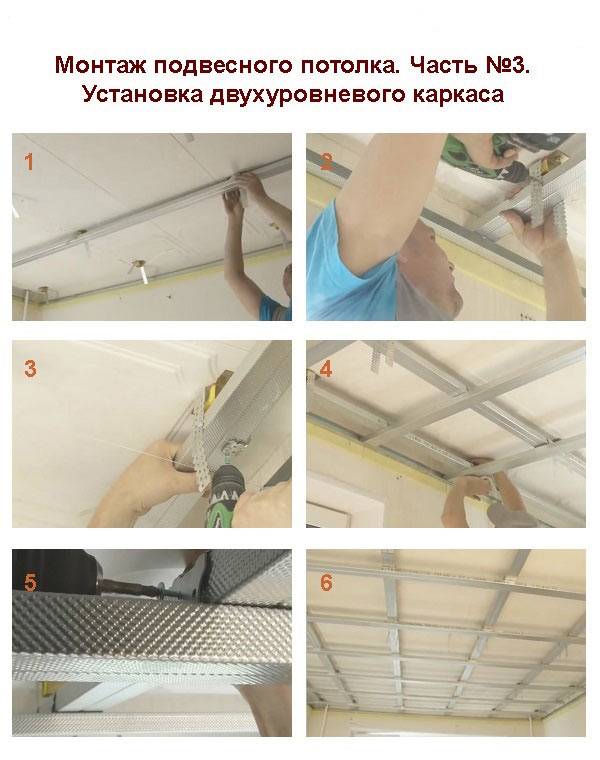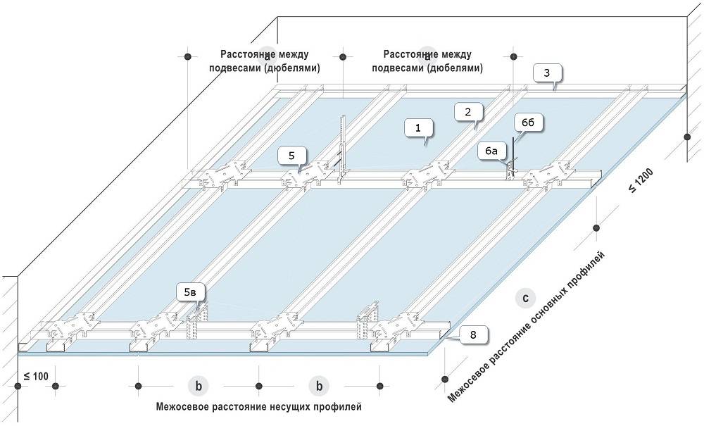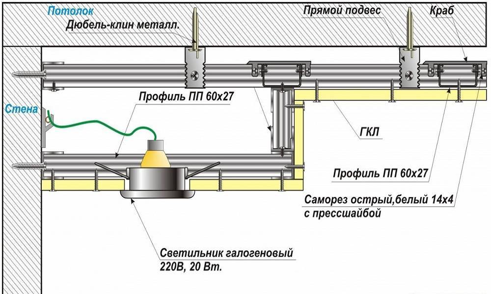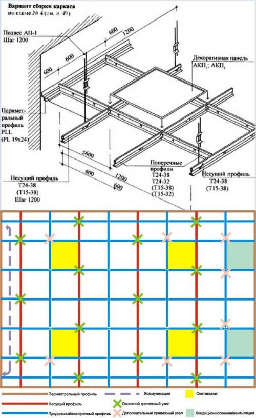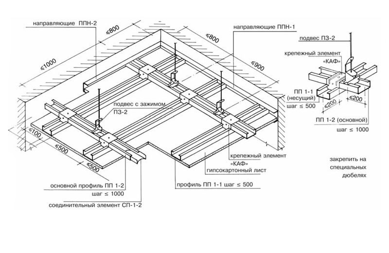 En général, la conception est assemblée dans le même ordre que celui dans lequel nous avons dessiné le schéma, vous savez donc déjà pratiquement comment installer un faux plafond. Mais regardons tout dans l'ordre et plus en détail.
