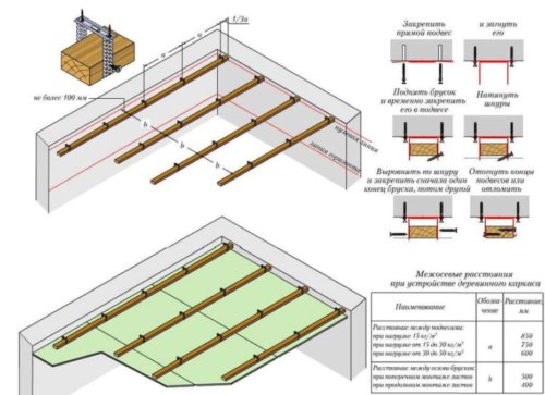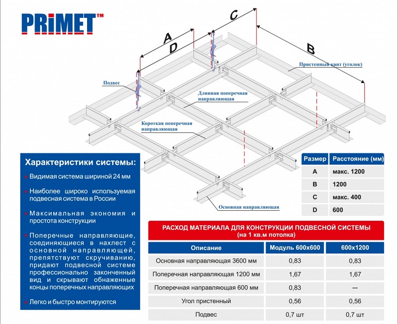 Il est à noter que la structure de crémaillère est une structure suspendue. Cela permet de niveler la surface du plafond sans utiliser de composés spéciaux, tels que le plâtre.