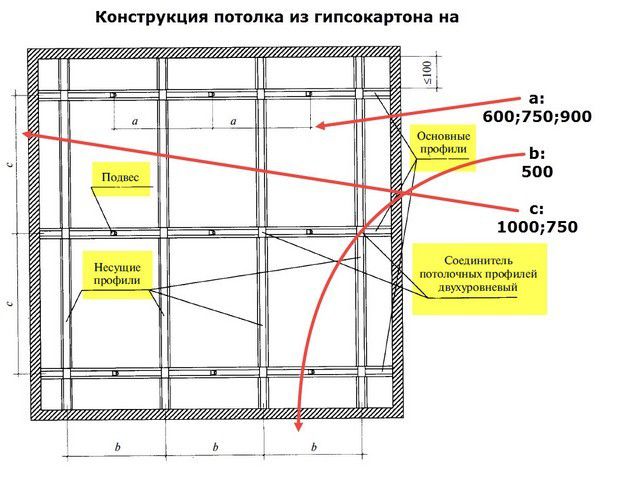 Pour marquer sous les profils principaux d'un plafond en plaques de plâtre, vous devez tenir compte de 2 points: