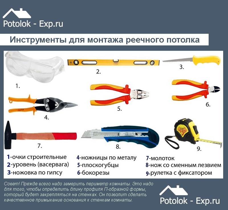 Avant de décrire directement comment fabriquer un faux plafond, vous devez déterminer les outils dont vous pourriez avoir besoin au cours du travail.