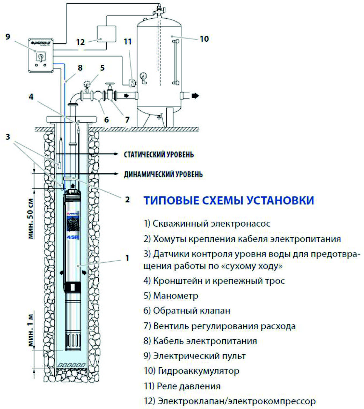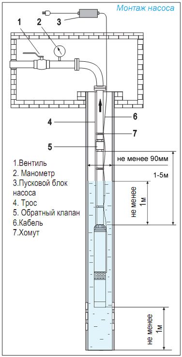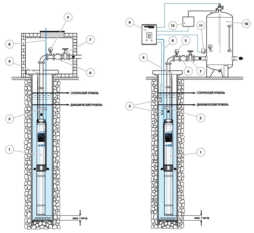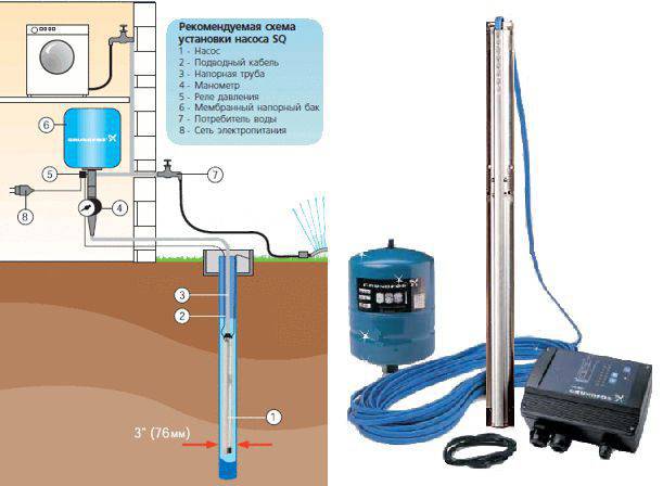 Les mécanismes de pompe profonde ont différents schémas d'alimentation. Les appareils monophasés et triphasés sont autorisés à être utilisés dans une mine d'eau.