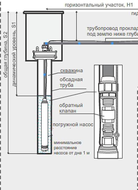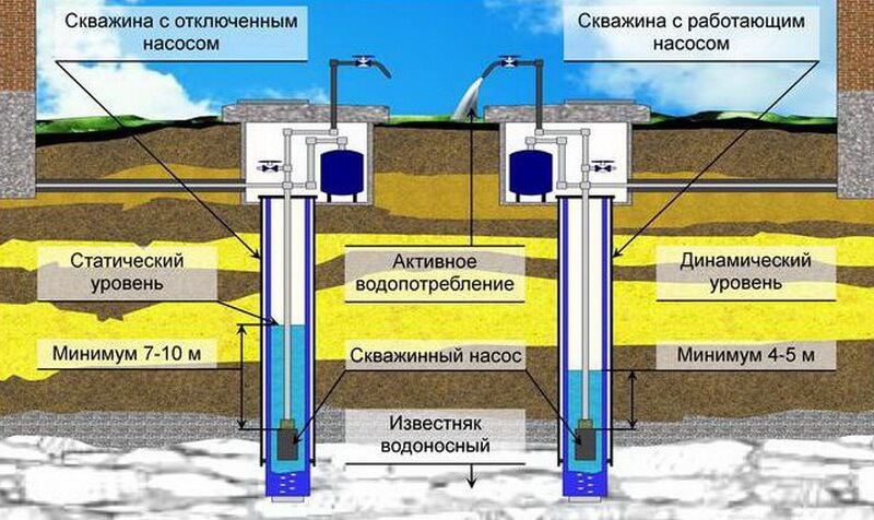 La hauteur de la colonne d'eau ou le niveau dynamique est également important - c'est la distance entre le bord de l'eau et le fond du puits. Il est nécessaire de prendre en compte la profondeur du puits ou du puits, car ce paramètre est également prescrit dans le passeport de la pompe. Ces indicateurs devraient idéalement correspondre
