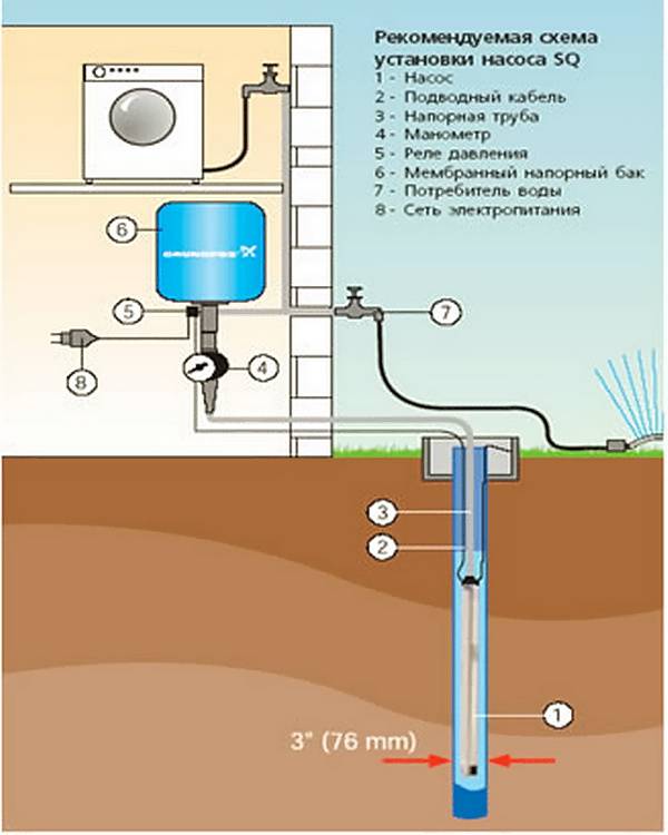 Pour que l'équipement de pompage fonctionne correctement, il est nécessaire de choisir la bonne pompe.En plus du niveau statique et dynamique, du débit du puits, de la consommation moyenne par personne et par jour, il est nécessaire de déterminer la hauteur totale de montée de l'eau du miroir au point d'alimentation le plus élevé. N'oubliez pas la section horizontale, dont 6% -10% doivent être ajoutés à la hauteur de l'ascenseur. Déterminez donc la pression requise.