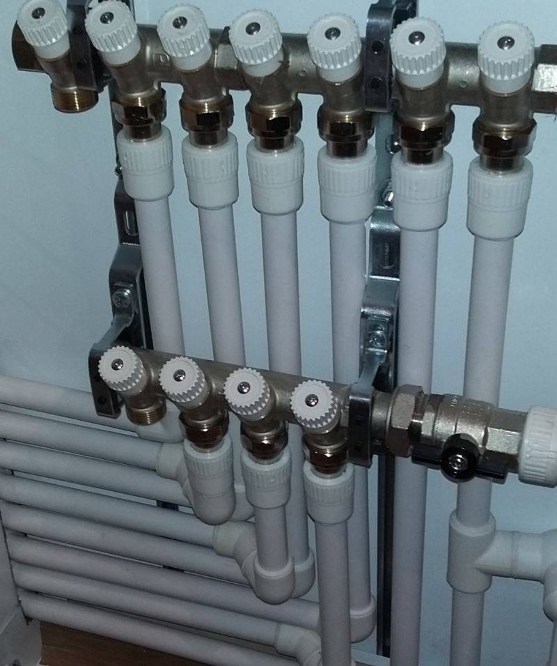 Un exemple d'un beau câblage en PP-R, le collecteur est également soudé à partir de tés en polypropylène