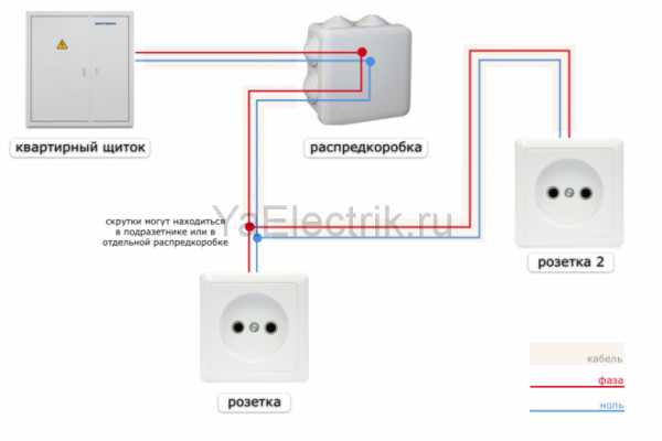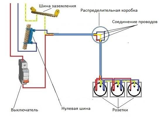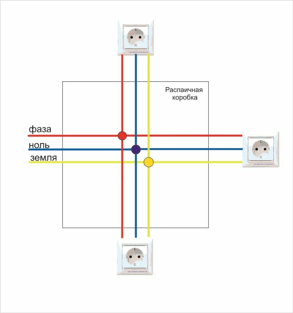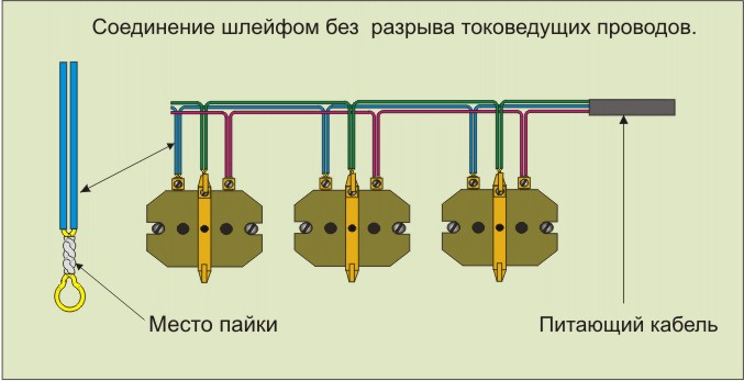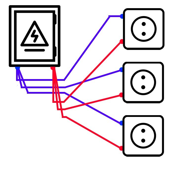 Le schéma est utilisé non seulement pour alimenter des prises situées séparément, mais également pour connecter des blocs comprenant deux points ou plus
