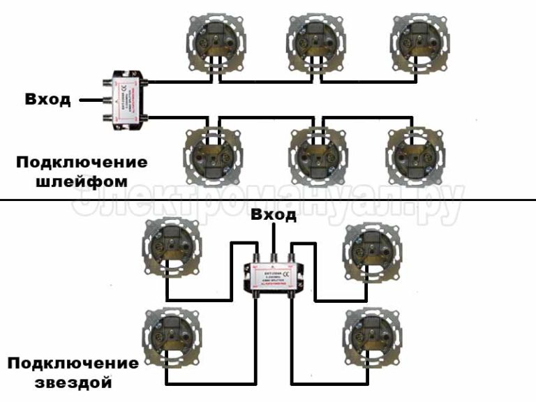 Une caractéristique du circuit parallèle pour connecter les prises, autrement appelée "étoile", est une connexion séparée au blindage de chaque prise. Le troisième nom bien fondé est "boxless", parce que. suggère la possibilité d'abandonner la boîte de jonction. La méthode est activement pratiquée dans les pays européens et, dans notre pays, elle est utilisée pour fournir une ligne distincte de consommateurs puissants, le plus souvent en combinaison avec la technologie en boucle.