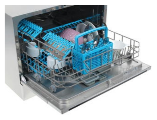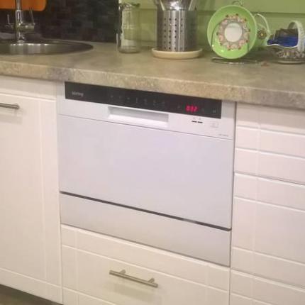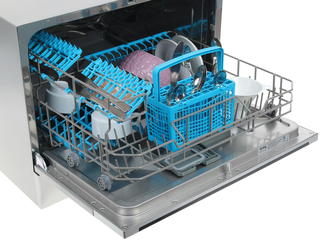 Le réservoir du modèle compact contient 6 ensembles de plats préparés pour le traitement. Pour effectuer la procédure de nettoyage, elle aura besoin de 7 litres d'eau. Le mini lave-vaisselle consomme 0,61 kW par heure. Le niveau sonore pendant la période de contrôle de la contamination des aliments est de 51 dB. Il est protégé des fuites par tous les moyens et dispositifs possibles.