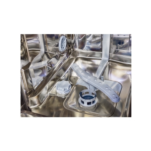 Le système de pulvérisation d'eau est intéressant, il a une disposition en forme de S, qui garantit que chaque article est lavé en mode 2 niveaux. La capacité totale des paniers dans un cycle est de 9 ensembles. Parmi les aspects positifs, on peut citer un faible bruit (44 dB), une protection maximale contre les fuites, un contrôle électronique, un éclairage tamisé, une minuterie intégrée, un capteur de présence de sel et d'agents de rinçage. Inconvénients du lave-vaisselle - un long processus de chargement des paniers, une période de garantie de 1 an.