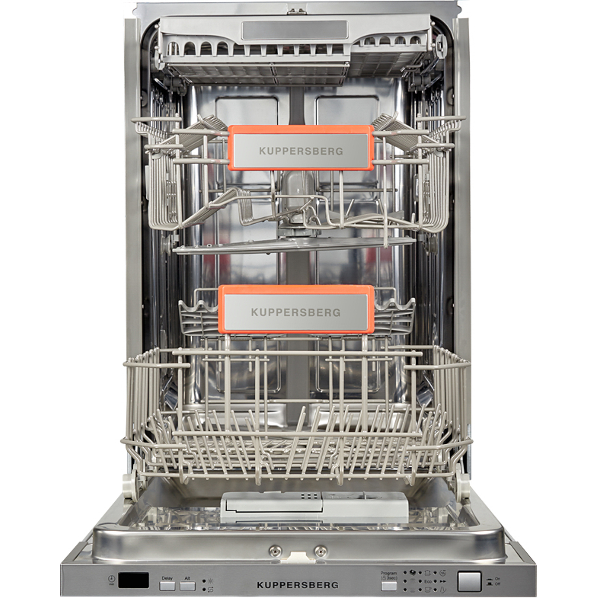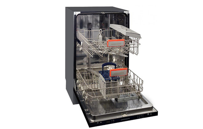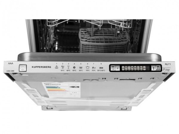 Le lave-vaisselle (44,8x55x81,5 cm) est blanc, comme presque toutes les machines de classement. Contient 10 ensembles. Contrairement à la version précédente, il est équipé d'un plateau pour le chargement de petits accessoires (cuillères). Il y a un écran, un capteur pour déterminer la qualité de l'eau, 5 niveaux de chauffage et 8 programmes : normal, accéléré, pour vaisselle délicate, très et peu sale, lavage avec trempage. Demi chargement autorisé. Vous pouvez retarder le lancement de 1 à 24 heures. Émet un bip lorsque vous avez terminé, comme les autres modèles intégrés. Équipé d'un rétroéclairage et d'un faisceau qui projette les paramètres de travail au sol. Permet l'utilisation de détergents 3 en 1. Consomme 9 litres. Un lavage normal dure 175 minutes. Puissance 2100W. Efficacité énergétique A+. Bruit 47 dB. Prix ​​: 20 965 roubles.