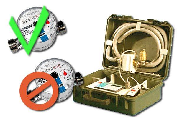 Tout d'abord, une inspection externe des compteurs est effectuée. Ensuite, déterminez l'erreur du compteur. La vérification des compteurs d'eau sans retrait prendra 5 à 20 minutes. Si des écarts sont constatés dans le fonctionnement du compteur par rapport aux paramètres spécifiés, l'appareil sera remplacé par un nouveau.