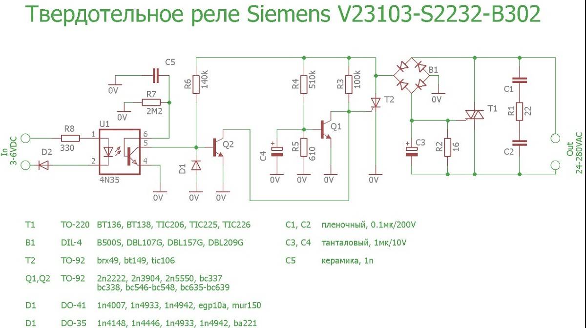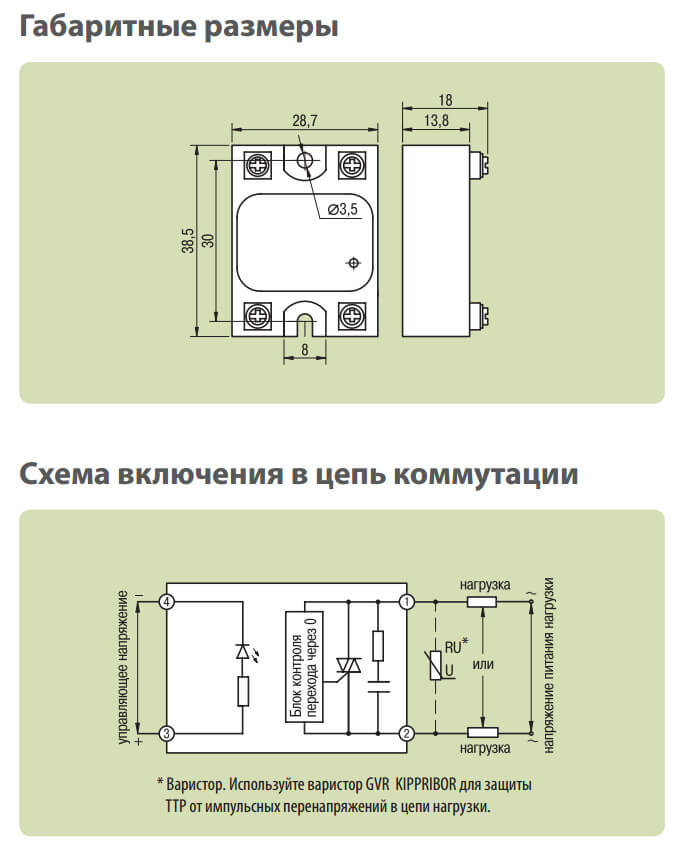 Le type de varistance est déterminé en fonction des caractéristiques spécifiques de l'appareil. Les varistances domestiques les plus populaires sont les séries : CH2-1, CH2-2, VR-1, VR-2. Le relais à semi-conducteurs fournit une bonne isolation galvanique des circuits d'entrée et de sortie, ainsi que des circuits porteurs de courant des éléments structurels de l'appareil, de sorte qu'aucune mesure d'isolation de circuit supplémentaire n'est requise.