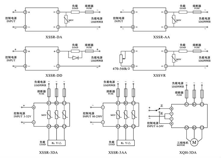 Souvent, des relais statiques triphasés sont utilisés pour alimenter un moteur à induction. Des fusibles rapides sont nécessairement inclus dans son circuit de commande en raison des courants de démarrage élevés.