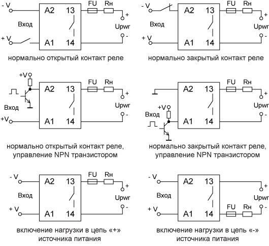 Riz. N° 10. Exemples de sélection de relais avec charge de courant active.