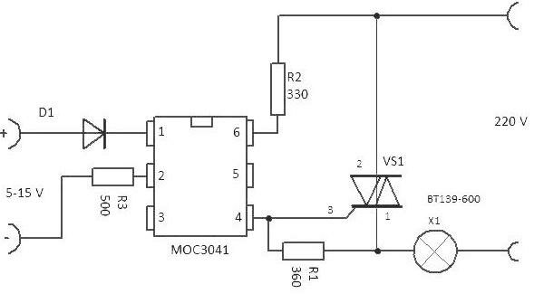 De tels relais statiques peuvent être utilisés presque partout, mais ils sont actuellement encore très coûteux. Par conséquent, il est logique de le collecter vous-même. De plus, leurs schémas sont simples et compréhensibles. Le relais statique fonctionne comme un relais mécanique standard - vous pouvez utiliser une basse tension pour commuter une tension plus élevée.