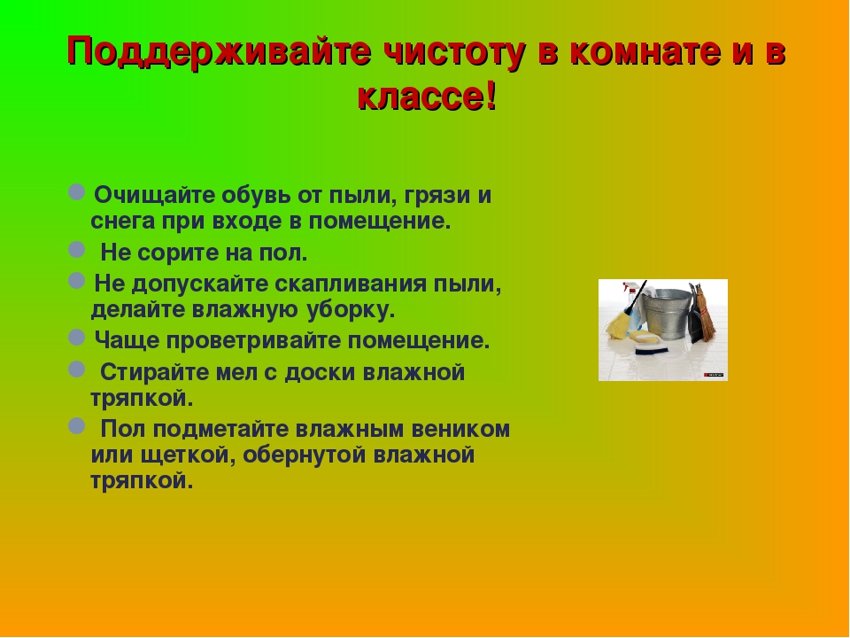 - les sols lors du nettoyage général sont lavés en dernier ;