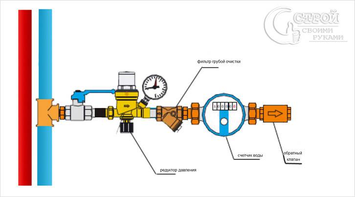 1. S'il y a un drain d'incendie dans la pièce où le compteur sera installé, il est nécessaire d'installer une vanne sur le tuyau de dérivation. Lorsqu'un spécialiste du service des eaux viendra, il le scellera également.
