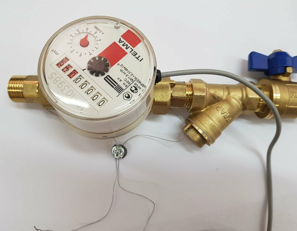 Les compteurs d'eau chaude et d'eau froide sont montés sur des conduites en position horizontale ou verticale. Après assemblage, la structure est connectée via un fil au contrôleur, qui enverra des données à l'organisation comptable des services publics.