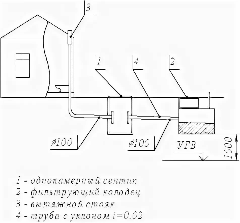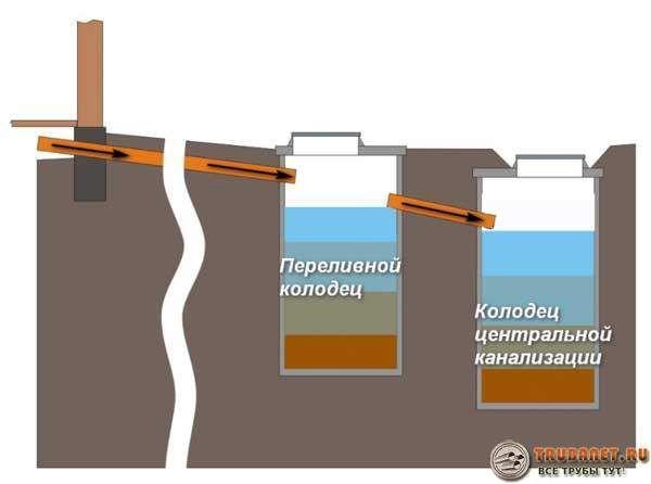 - puisard avec dispositifs de clarification partielle des eaux de drainage. Un puits filtrant ou une fosse septique à chambre unique est utilisé comme élément de travail. Le puits/fosse septique accumule périodiquement des déchets solides à éliminer ;