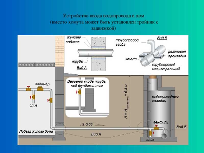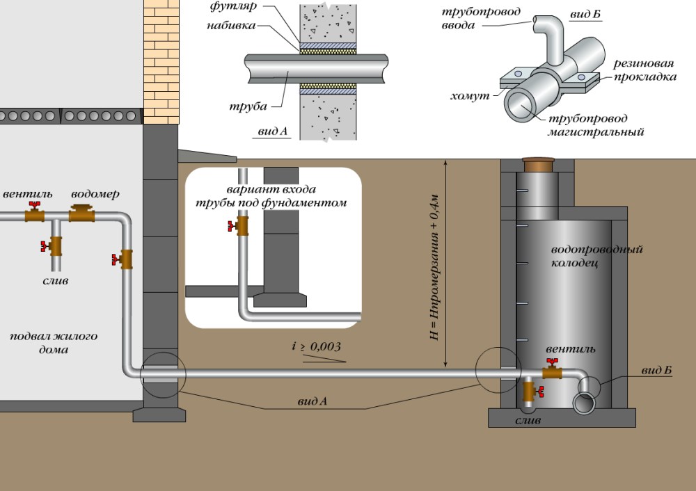 Lors de la pose du tuyau de la maison à la colonne montante centrale, les conditions suivantes sont respectées: