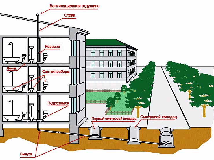 Pour réduire les coûts, vous ne pouvez convenir que d'un raccordement à la colonne montante d'égout central et connecter vous-même la maison privée et le câblage de la ligne de la maison.La pose de la canalisation doit être terminée avant l'arrivée de l'organisation d'installation.