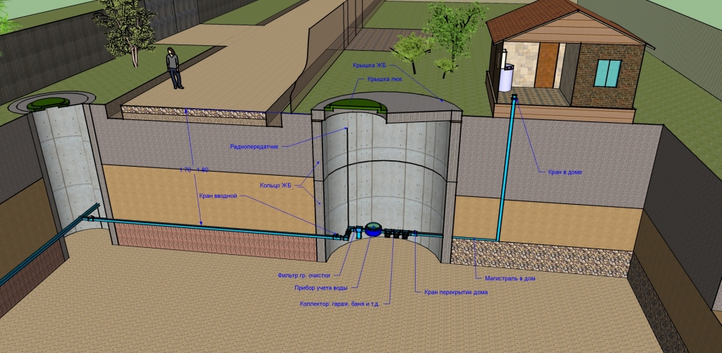 - avec un pompage en temps opportun, des fosses de drainage sous la forme d'un conteneur en béton ou en brique avec étanchéité peuvent être utilisées pour desservir une petite maison privée / chalet / dépendance d'invités.Le volume de ces fosses est également de 5 ... 15 mètres cubes, de sorte que l'utilisation d'un lave-linge / lave-vaisselle et le fonctionnement actif de la douche / baignoire devront être limités;