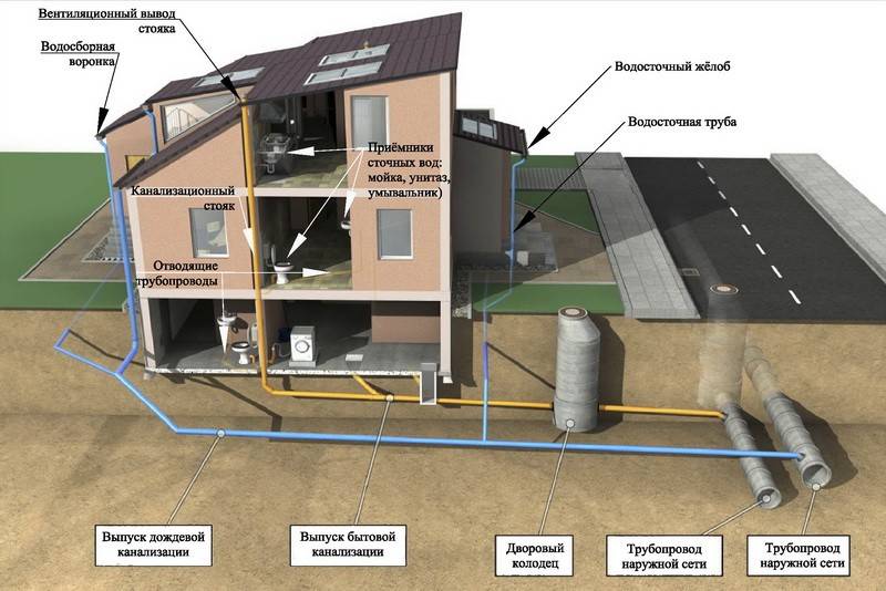Tous les types de communications de drain peuvent être divisés en deux types - autonomes et centralisés. La première option est caractérisée par une fosse de vidange ou une fosse septique, une station d'épuration. Les déchets ménagers et organiques qui en découlent sont soit pompés et acheminés vers des zones désignées pour traitement et transformation, soit nettoyés sur place à l'aide d'un système de filtres et de décanteurs. Lors de l'installation d'un système d'assainissement centralisé, les effluents sont acheminés vers le système de la ville (rural, canton).