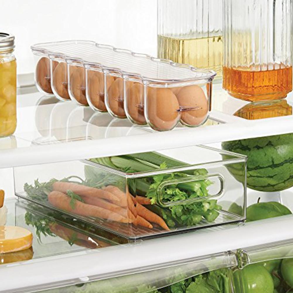 Ainsi, résumons. Pour une bonne conservation des produits, il faut : se débarrasser des emballages plastiques, transférer les produits dans des barquettes en verre et les disposer sur les clayettes du réfrigérateur.