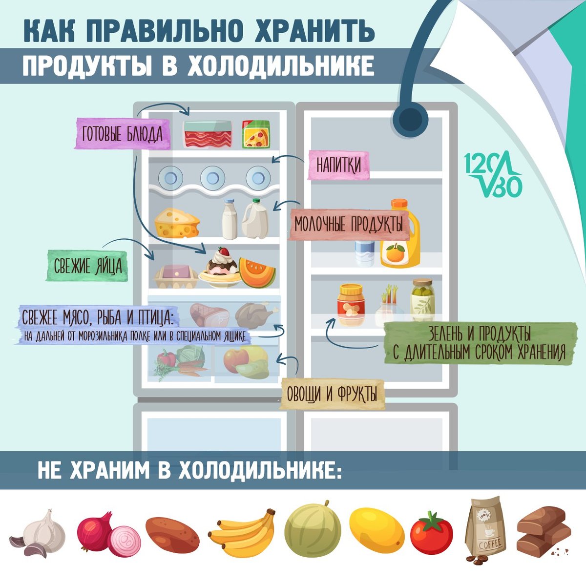 Sur différentes étagères du réfrigérateur, un régime de température différent est créé. Plus près du congélateur, situé en haut ou en bas, la température la plus basse, plus loin - la plus élevée. La température de stockage des aliments dans le réfrigérateur est différente pour différents produits. Il y a donc des règles ici.