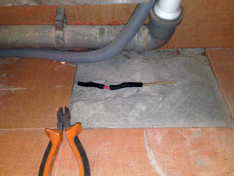 Si le sol chaud ne chauffe pas, la cause de ce problème peut être une perte de contact dans le couplage. Cela se produit dans le cas d'un rayon de courbure important du câble chauffant. Sous l'effet d'une tension mécanique élevée, il sort spontanément de l'articulation.Pour éliminer ce problème, il est nécessaire de réchauffer le couplage (par exemple, avec un sèche-cheveux de bâtiment), puis de libérer la zone à problème avec un couteau de bureau et de faire une nouvelle torsion en sertissant avec un manchon en cuivre. De plus, il est préférable d'envelopper le fil avec une gaine thermorétractable ou du ruban électrique.