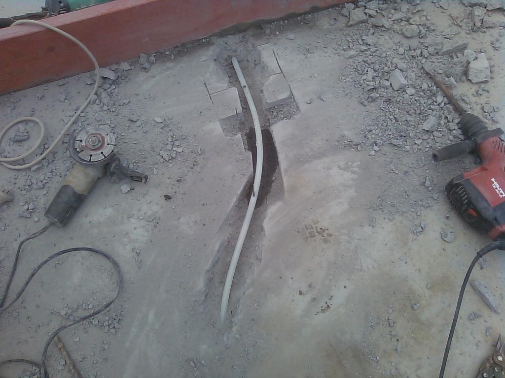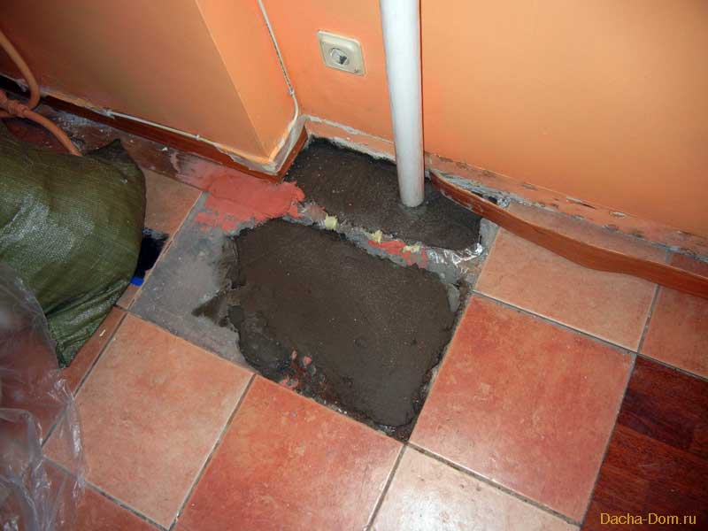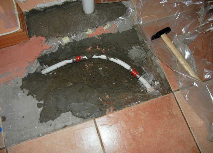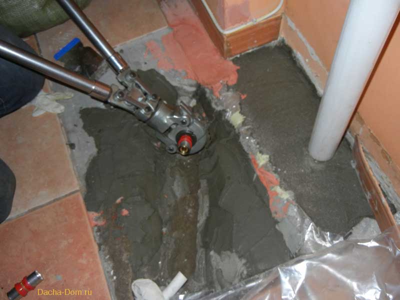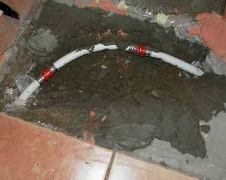 Le processus de réparation consiste à enlever le revêtement de sol et la chape à l'endroit des dommages. Ensuite, un "patch" est découpé et enfoncé pour éviter les fuites. Avant de restaurer la chape, vous devez vérifier si les tuyaux fuient. Pour ce faire, mettez de l'eau dessus. Si tout est en ordre, vous pouvez remplir la chape et remettre le revêtement de sol à sa place.