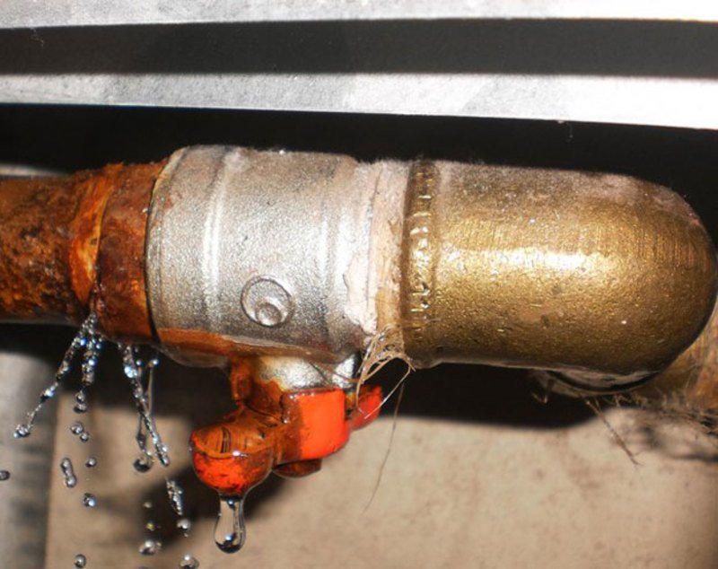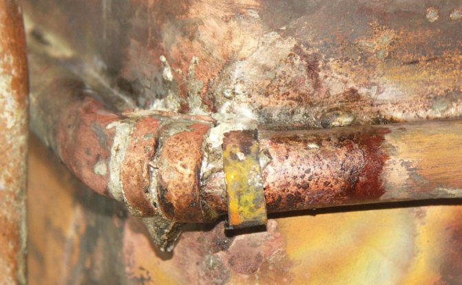 Ici, la cause de l'humidité peut être une installation incorrecte, le problème devient perceptible après le démarrage du système de chauffage. La colonne montante avec le tuyau est généralement reliée par soudage ou filetage, dans les deux cas, un assemblage négligent, une soudure imprécise, l'utilisation de tuyaux de diamètres différents provoquent des taches et nécessitent une réparation immédiate.