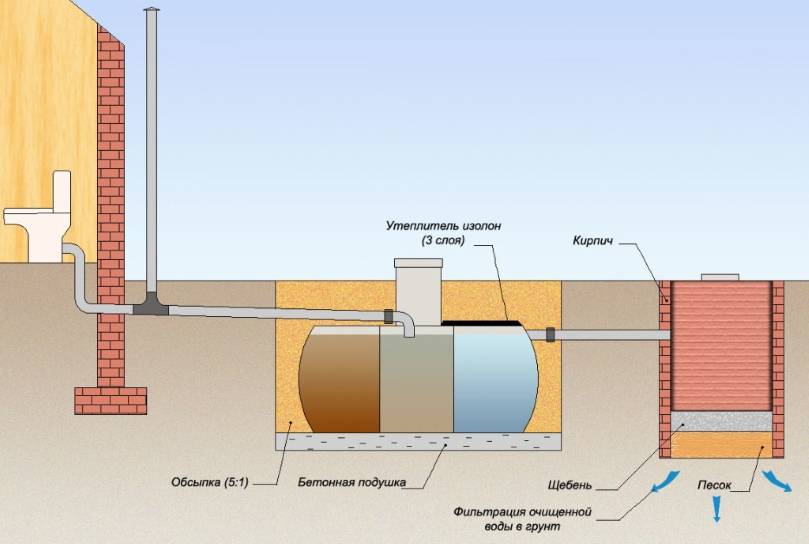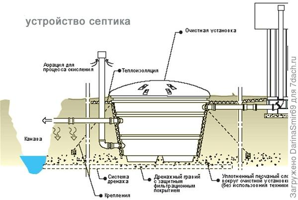 Une fosse septique est un moyen plus humain d'éliminer les eaux usées. Le principe de base de son travail est la purification initiale de l'eau des impuretés toxiques et des déchets solides. Ce système se compose de plusieurs réservoirs. Les eaux usées sont rejetées dans le premier réservoir. En raison de la masse différente, les déchets solides et les composants chimiques se déposent au fond, les graisses et les objets plus légers remontent à la surface et l'eau passe à la deuxième étape de purification à travers un tuyau spécial.