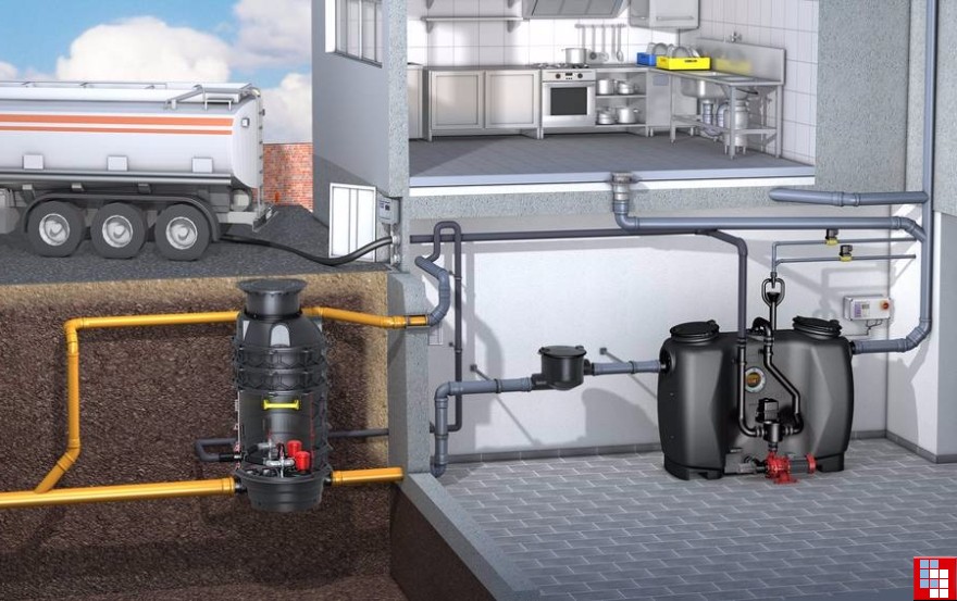 Il convient de s'attarder sur la conception à deux chambres du réservoir, dans ce cas un compartiment jouera le rôle de décanteur primaire, et le second jouera le rôle de chambre de pompage. C'est dans celle-ci qu'une pompe fécale équipée d'un broyeur sera installée. Le remplissage du réservoir est contrôlé par des capteurs spéciaux, lorsque le niveau seuil est atteint, la pompe est démarrée pour les pomper.