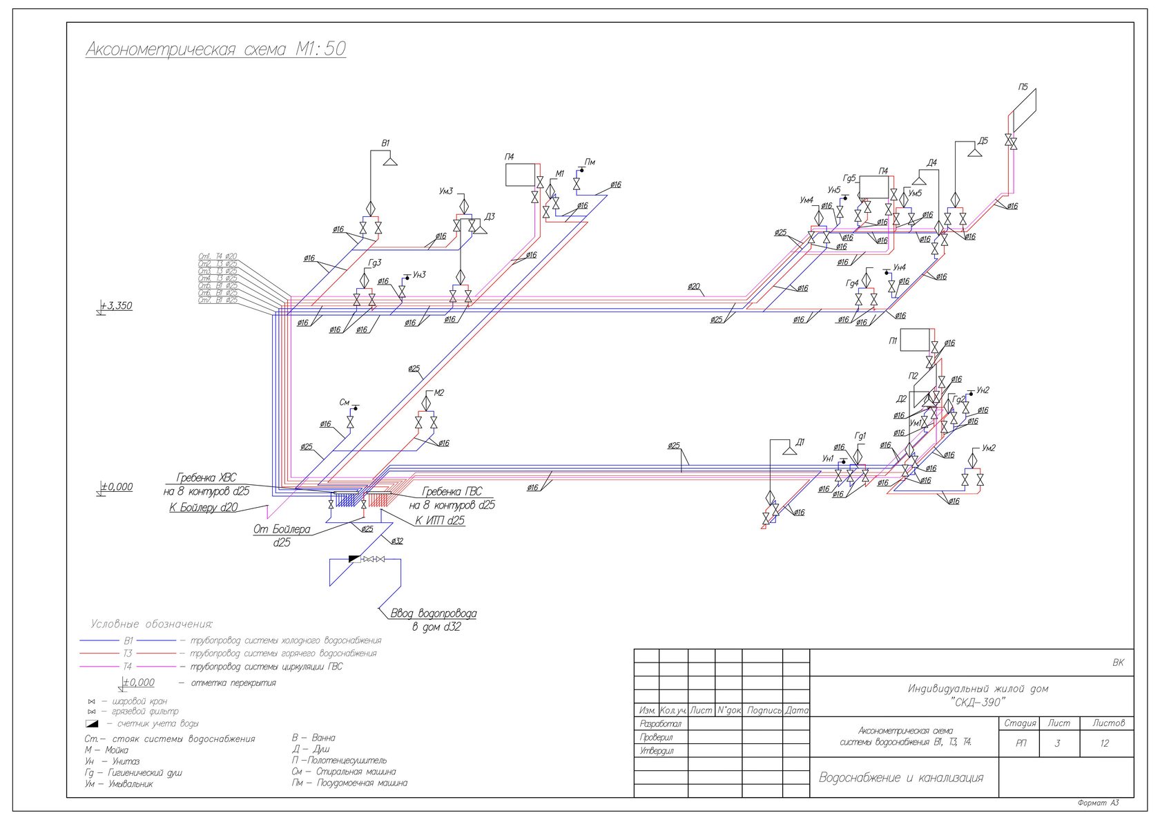 - Il est nécessaire de dessiner un schéma indiquant tous les types d'équipements de plomberie. Dans ce cas, il est nécessaire de prendre en compte l'option de pose du pipeline: à l'intérieur du sol ou en surface, afin de comprendre si des travaux de démontage devront être effectués.