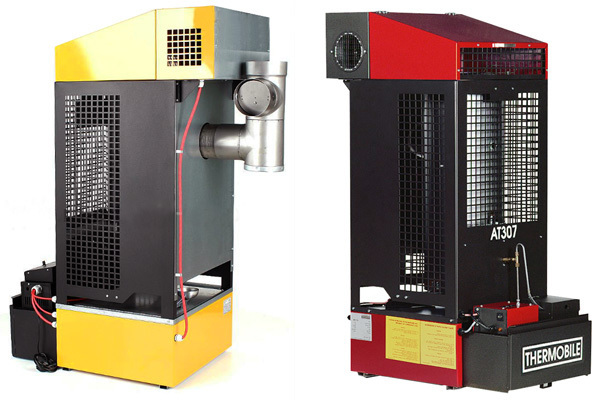 Forme unitaire. Les réchauffeurs thermiques à combustible liquide peuvent avoir une forme rectangulaire et cylindrique. Rectangulaire en raison de la grande surface de distribution du flux d'air, il peut être utilisé comme la meilleure option lors de travaux de construction à l'intérieur.