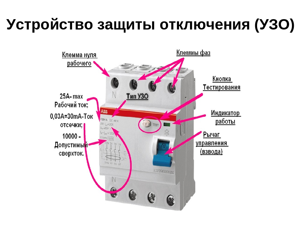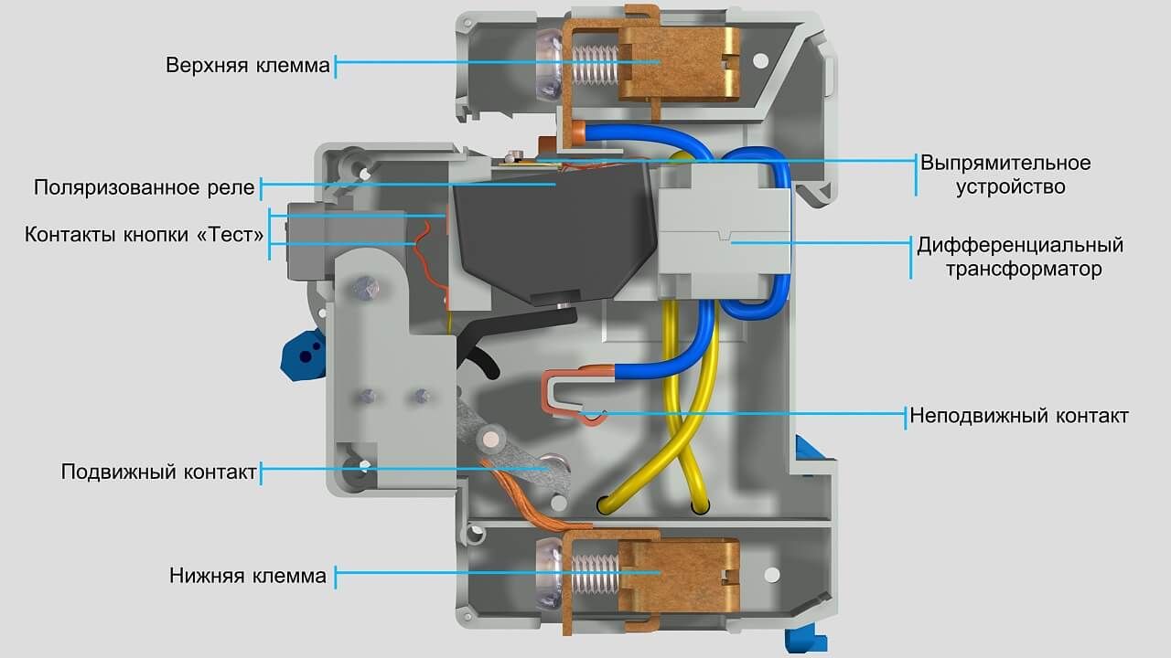 Difaavtomat se compose de pièces de travail et de protection. Le premier comprend la machine. Il contient : un système de déclenchement et un rail qui réarme le disjoncteur. Selon le type d'appareil, il existe des différentiels bipolaires et tétrapolaires. Le système de libération a deux versions :