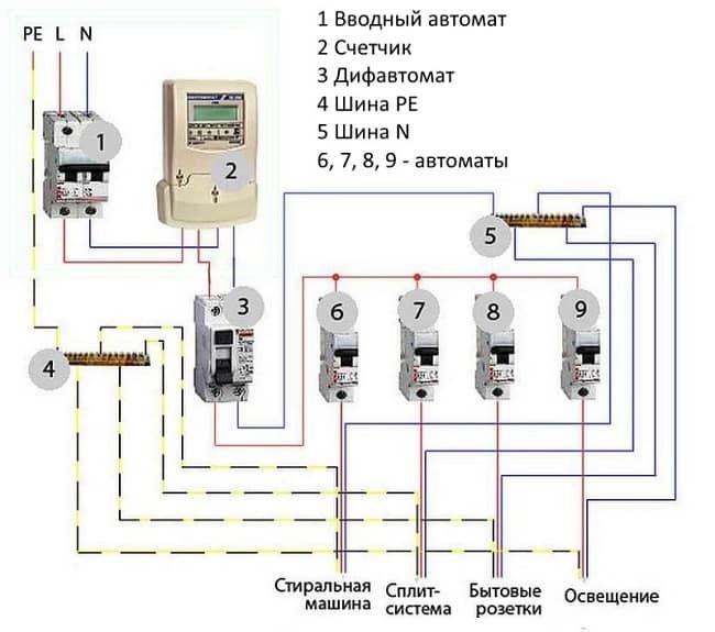 L'installation d'automates différentiels se produit, ainsi que l'installation de différentiels. Le type de réseau détermine le type de machine différentielle qui sera installée. Les diffuseurs bipolaires sont associés à un réseau monophasé 220 volts. Les conducteurs de neutre et de phase du réseau actif sont reliés aux fixations des pôles supérieurs, conducteurs de charge similaires aux pôles inférieurs.