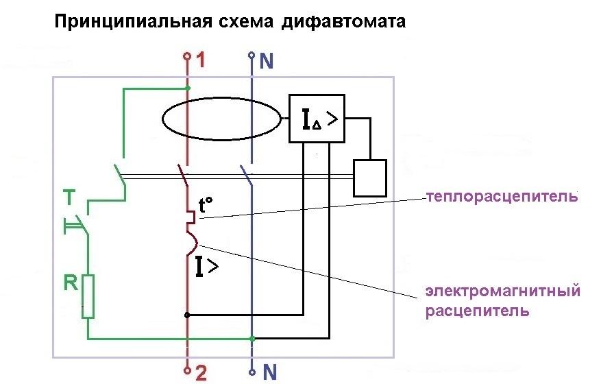 Difavtomat combine 2 fonctions - un dispositif de courant résiduel (RCD) et un disjoncteur. A une partie de travail et de protection. La partie travaillante est interrupteur automatique deux- ou tétrapolaire, qui est équipé d'un mécanisme de déclenchement indépendant et d'un rail de réarmement. Le difavtomat est équipé de deux types de déclencheurs - thermiques, qui coupent l'alimentation lorsque le groupe protégé est surchargé, et électromagnétiques, dont le but est de couper la ligne en cas de court-circuit.