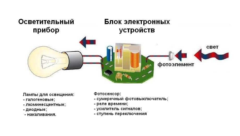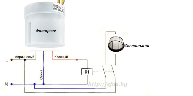 Ici, l'interrupteur photosensible démarre un dispositif spécial, à travers lequel l'équipement d'éclairage est déjà alimenté. Ceux. beaucoup dans le choix d'un modèle de capteur photo dépend de la puissance du circuit des lampes qui lui sont connectées.