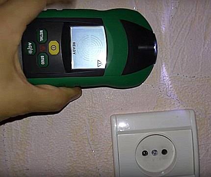 Dans les cas où il n'est pas possible de connecter la tension au câblage ou à la charge, des détecteurs de métaux sont utilisés. Le principe de fonctionnement de ces appareils repose sur le fait que le métal, tombant dans un champ électromagnétique, y provoque des perturbations, qui sont enregistrées par l'appareil.