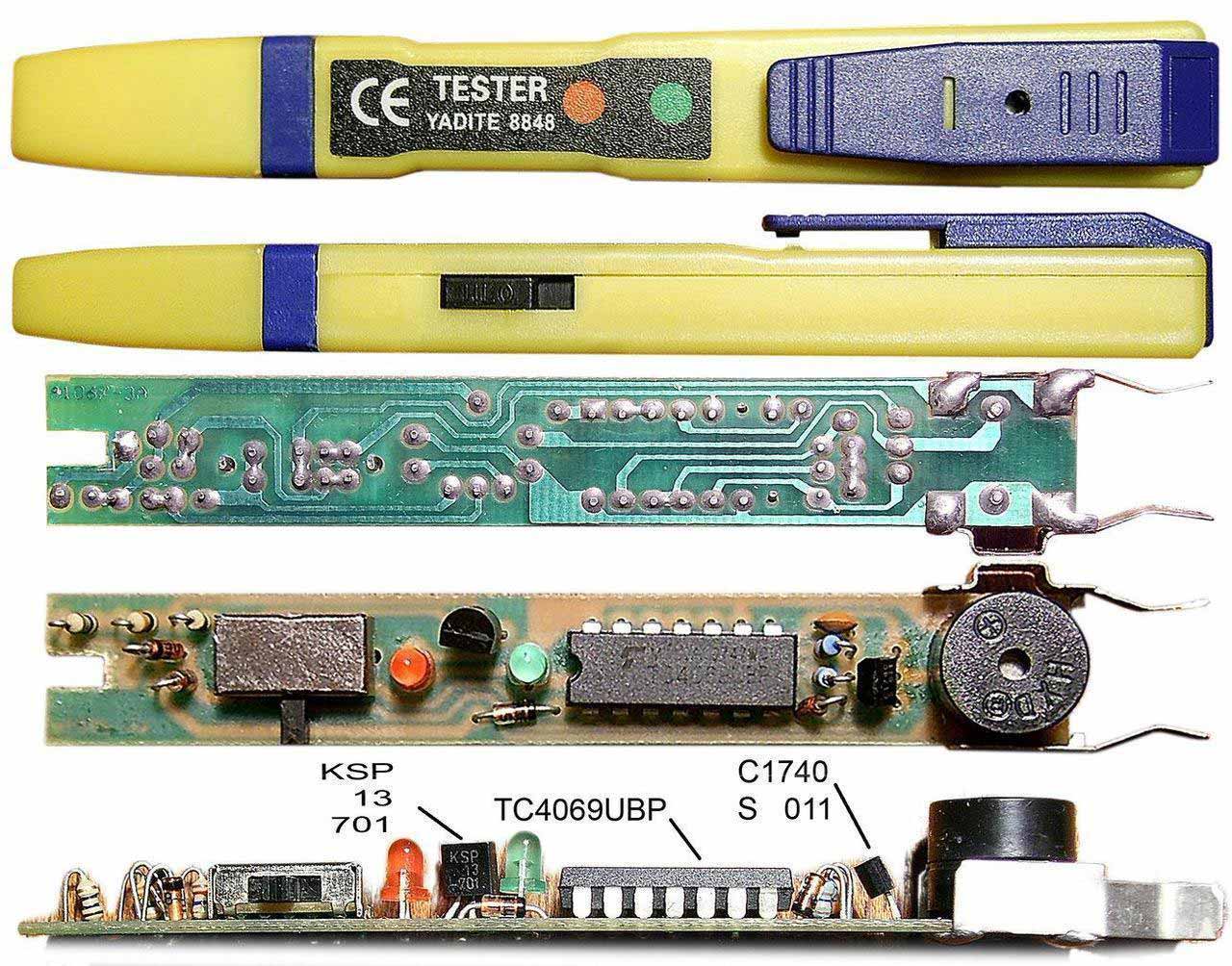 Indicateurs unipolaires. Ce type comprend les appareils les plus simples, dont le schéma de conception est décrit ci-dessus: basé sur une piqûre et une lampe au néon pour l'indication. Les appareils unipolaires plus avancés ont une lampe LED, une alimentation par batterie, un signal sonore - en plus de la lueur de la lampe. Selon le principe de fonctionnement, de tels indicateurs sont identiques aux appareils les plus simples, mais il devient possible de faire sonner les fils.