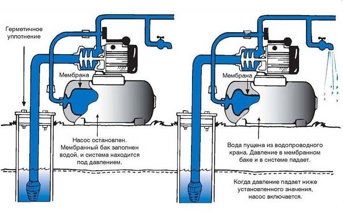 Les principaux éléments structurels de la station de pompage sont une pompe de surface et un accumulateur hydraulique (réservoir hydraulique sous pression) reliés entre eux, ainsi qu'un pressostat automatique qui contrôle le fonctionnement de la pompe. Cela ne suffit pas pour le fonctionnement autonome du système.
