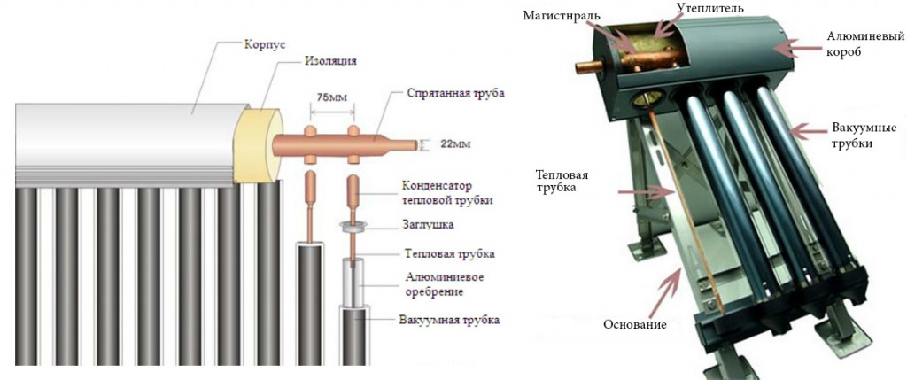 - Ensuite, les tubes du dissipateur thermique sont installés. Étant donné que des produits d'usine sont utilisés, il est nécessaire de lire attentivement les instructions d'installation qui y sont jointes. À ce stade, vous devez essayer de calculer toutes les nuances possibles, car une erreur entraînera des coûts économiques importants. Ces articles sont assez chers.