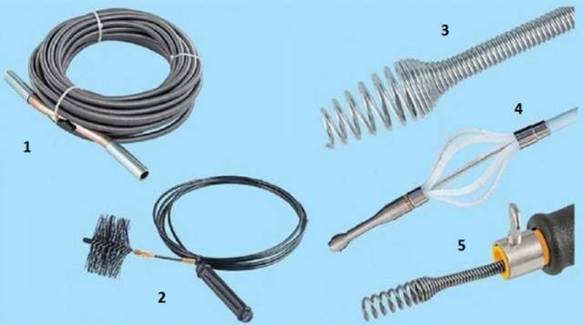 Dans les installations mécaniques, la pollution des égouts est éliminée à l'aide d'un câble de nettoyage. Il peut être réalisé sous la forme de longues tiges métalliques (tige), d'une spirale torsadée en tambour (tambour) ou d'une spirale de composition composée de différentes sections (sectionnelle).