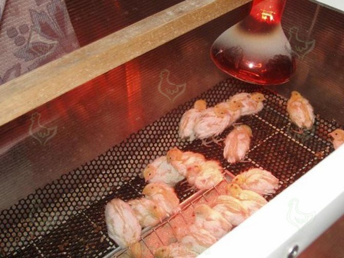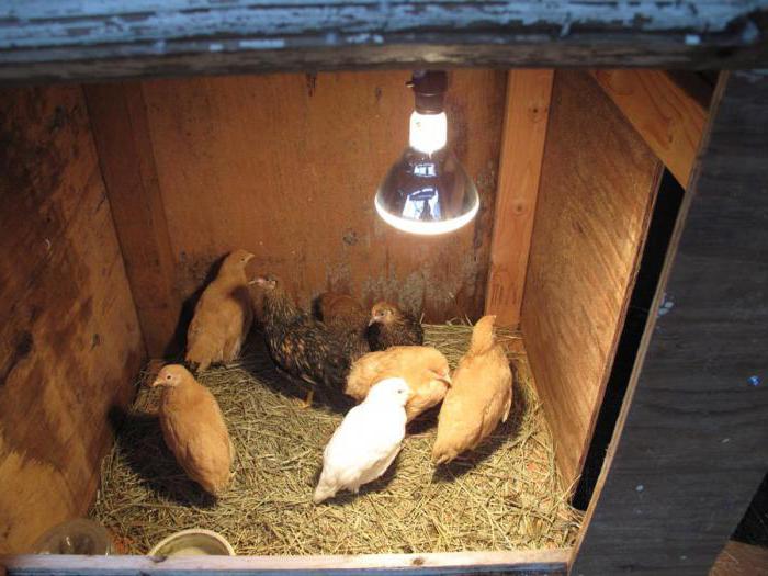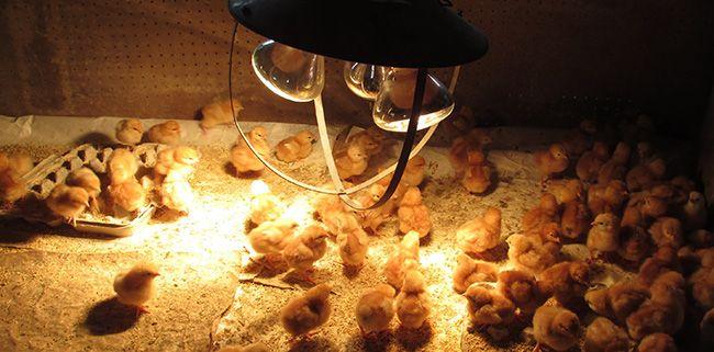 Dans l'arsenal devrait avoir 2 lampes. Si l'un se détériore, il doit être remplacé en temps opportun. Cela aidera à garder les poussins en bonne santé.