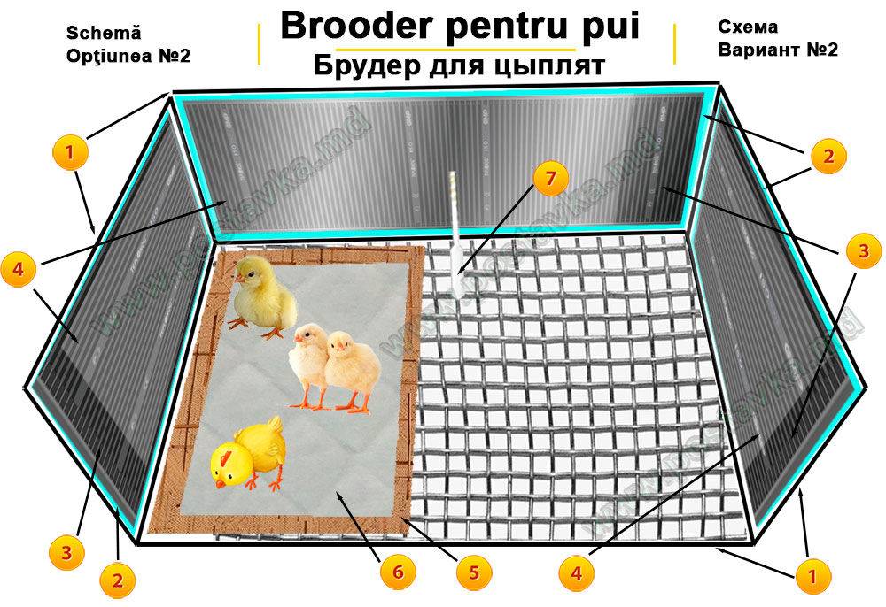 Les dimensions pour 100 poulets sont de 200 x 100 cm avec une hauteur de 50 cm.Ce type d'éleveuse, comme les boîtes et les boîtes, n'a pas toujours un effet positif sur la santé des jeunes, c'est pourquoi des conceptions spéciales sont le plus souvent réalisées.